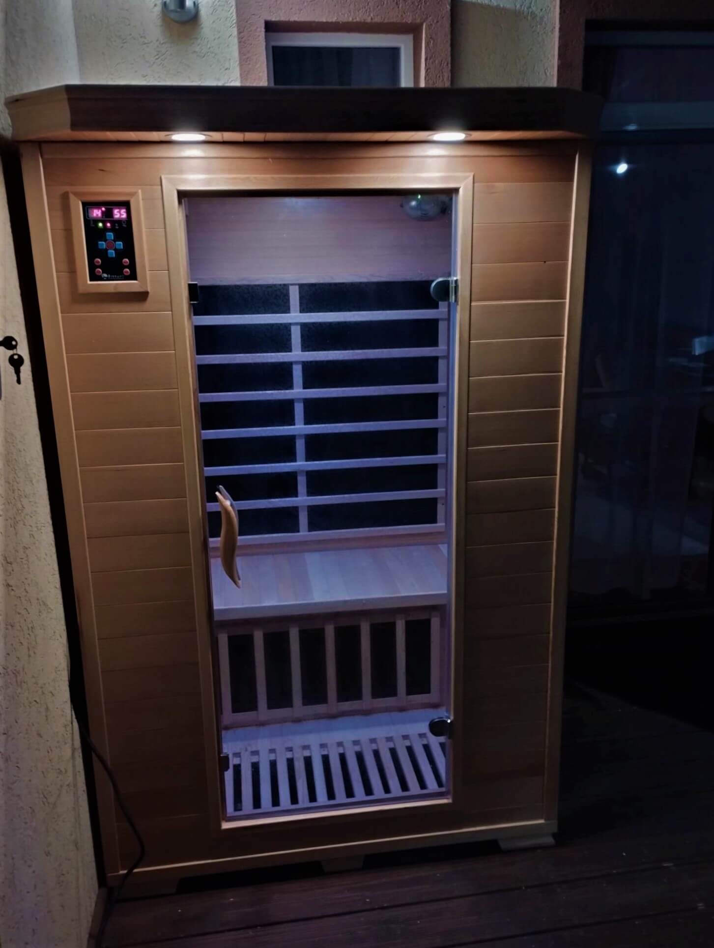 Felmelegedési idő: 15-25 perc között 50-60℃-ra. Amennyiben nem fűtött, fedett teraszon helyezi el az infraszaunát, ez az idő meghosszabbodhat.