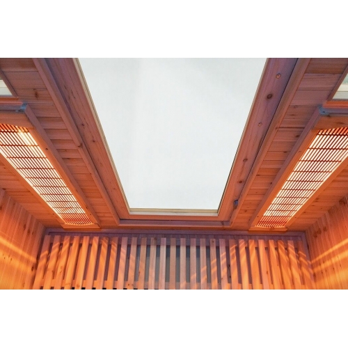 A Bionwell kültéri infraszauna kerámia és full spektrum fűtőegységgel is fel van szerelve, így még melegebb hőérzetet ad, a test egészét átmelegítik - ami nagyon fontos egy kültéri infraszaunánál. A full spektrum sugárzók az infravörös fény mind a 3 tartományában sugároznak (erről és az infravörös sugárzás jótékony hatásairól bővebben itt olvashat), így hatásuk (méregtelenítés, fogyás, narancsbőr, stb.) még eredményesebb, mint a korábbi infraszaunáké. Bekapcsolás után akár azonnal beülhet az infraszaunába, a full spektrum csövek a beindítás pillanatától sugározzák az infrasugarakat mind a 3 tartományban (IR-A, IR-B és IR-C - erről és az infravörös sugárzás jótékony hatásairól bővebben itt olvashat), elkezdődik a melegedés. Az infraszaunákban a full spektrum sugárzó hatása a legösszetettebb, ez az egyik legmodernebb csősugárzó típus, mely mélyre ható sugarakat bocsát ki, és hozzá közel ülve intenzív hőérzetet ad - emellett fénye kellemes, napsárgás színű. A kerémia fűtőegységeket pedig egyenletes hőelosztás és nagy sugárzó felület jellemzi. A cső- és lapsugárzók magas száma (8 db! - 5db kerámia /nem világít/, 2db full spektrum /világít/, 1 db nAno carbon /nem világít/) segíti a hatékony és eredményes méregtelenítést! A nAno carbon infravörös panellel láb körüli terület melegebben tartható, és a carbon fűtőegység pozitív hatásai is érvényesülnek infraszaunázás közben.