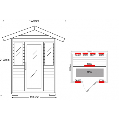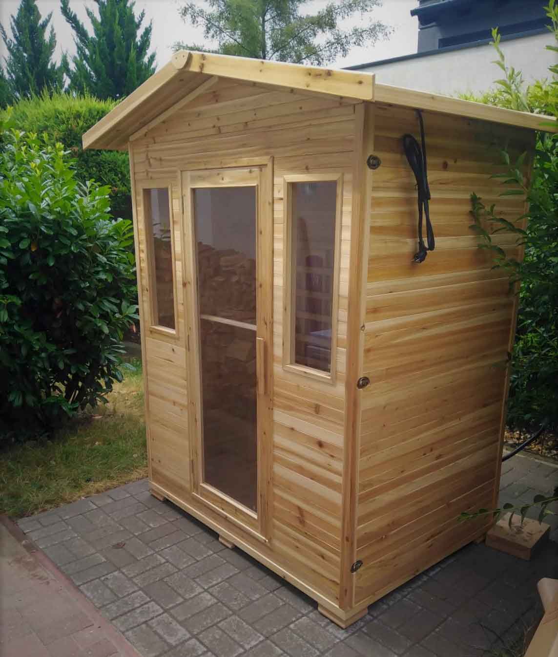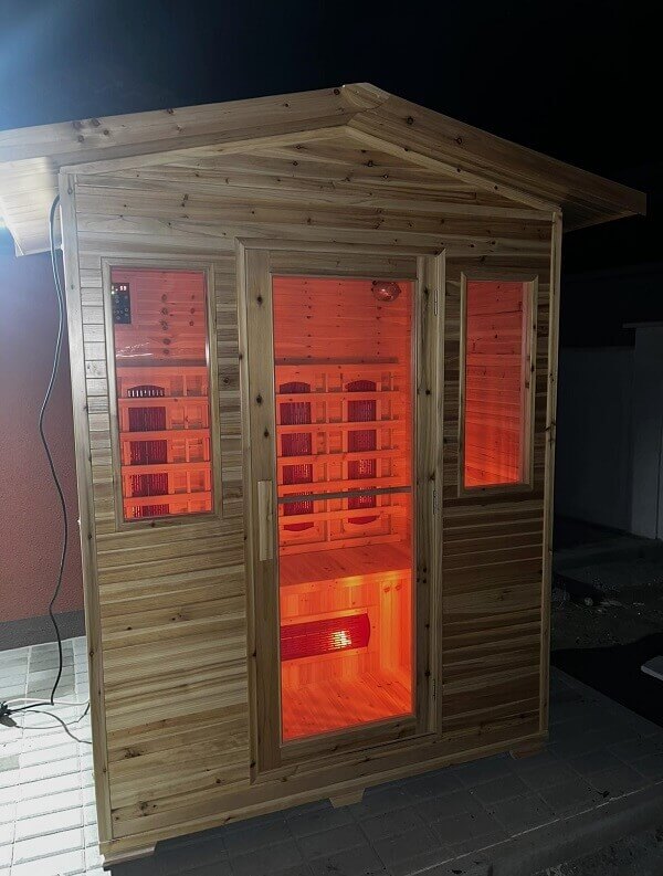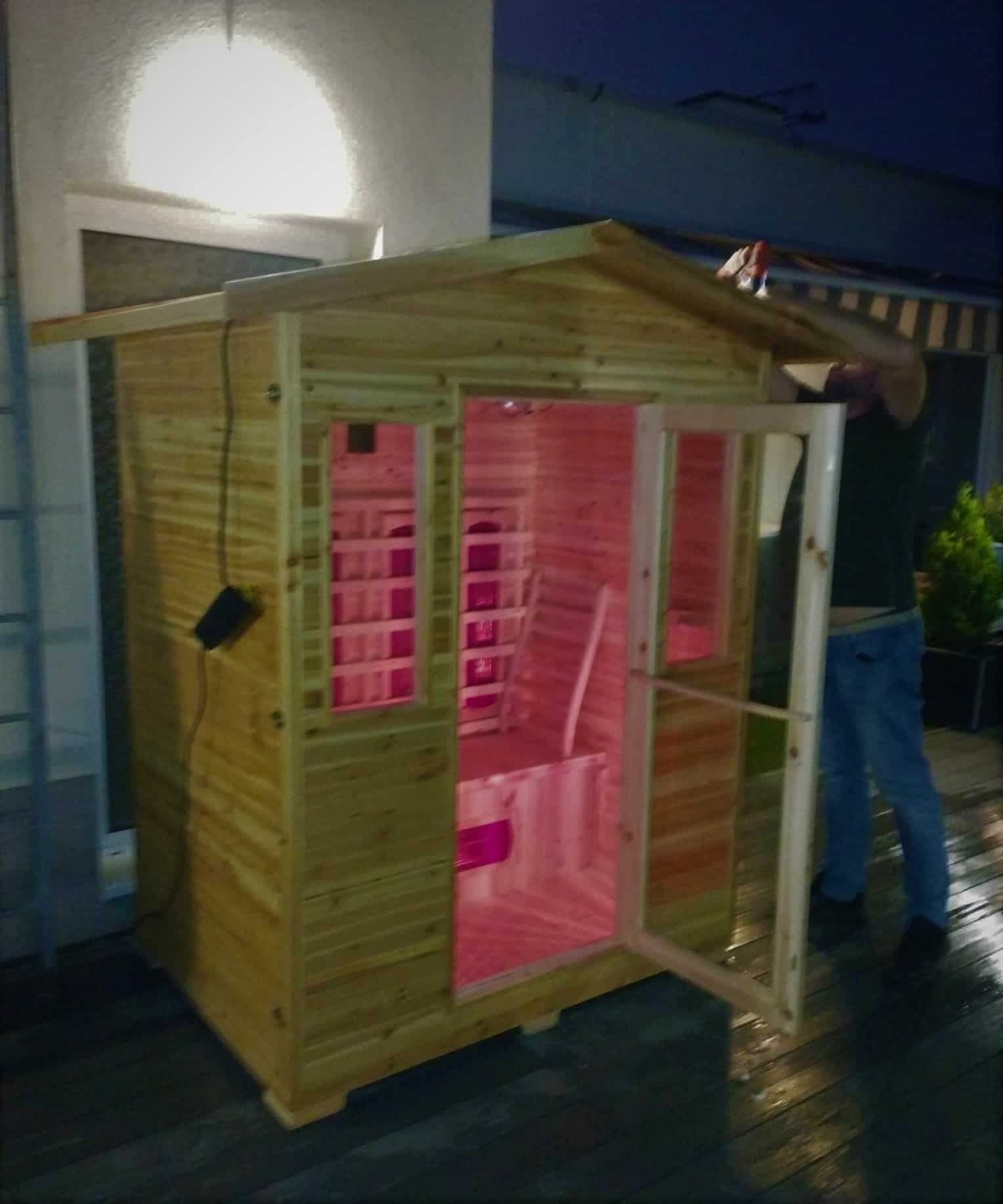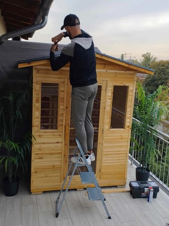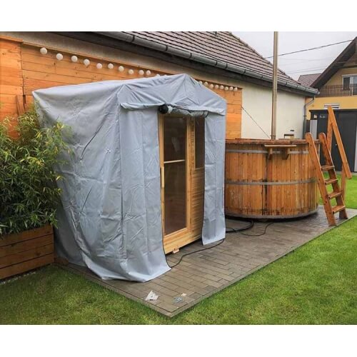A faanyagot esőtől óvni kell! Ha szabad ég alatt helyezné el az infraszaunát, akkor esőben-hóban nem ajánlott használni. Használaton kívül pedig az infraszaunához tartozékként járó külső műanyag szaunahuzat (takaróponyva) megóvja a faanyagot és védelmet biztosítja a fagy, a víz, az oldalról beverő eső, a por és az erős napsütés ellen. Plusz védelemként javasoljuk akár fémlemez-fedés rögzítését a szaunakabin tetejére, illetve egy (beton-járólap)alapot a szauna alá - amennyiben nem fedett teraszon helyezné el. Kialakításának köszönhetően kiválóan tartja meg a hőt felfűtés után, és közben nem is ereszti ki. 15-25 perc alatt felmelegszik 50-60 celsius fokra, melyet a kinti hőfok nem befolyásol.
